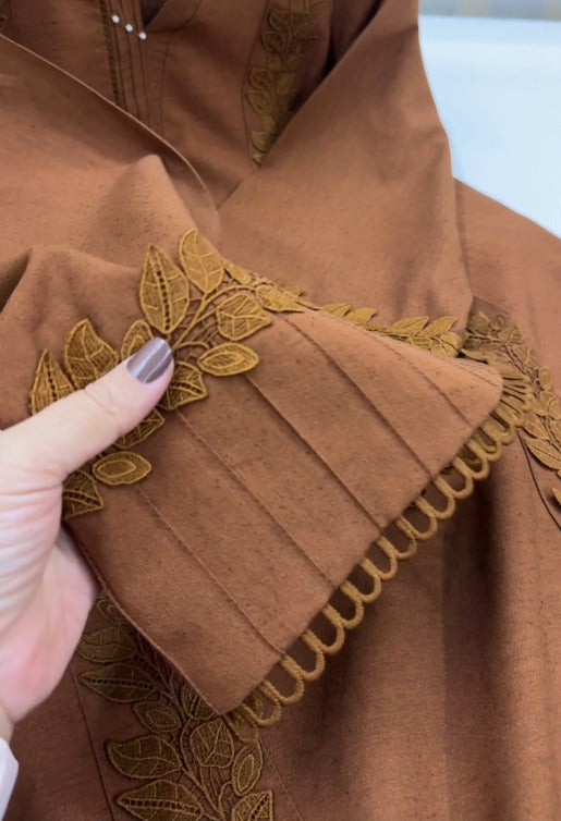 Provide Superb Quality Hand Made Neckline, Front Panel Attached Embroidered Laces Shirt Bottom & Sleeves Bottom Attached Loops Lace,